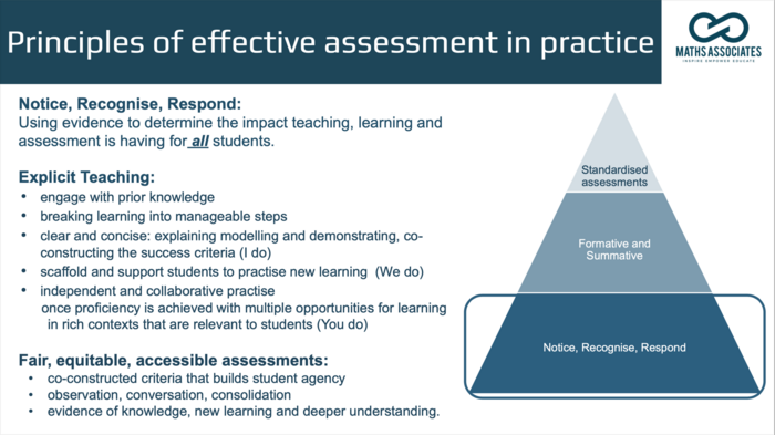 The lens through which we at Maths Associates support schools to make wise assessment decisions that lead to improved outcomes for all ākonga is by ensuring effective assessment is: